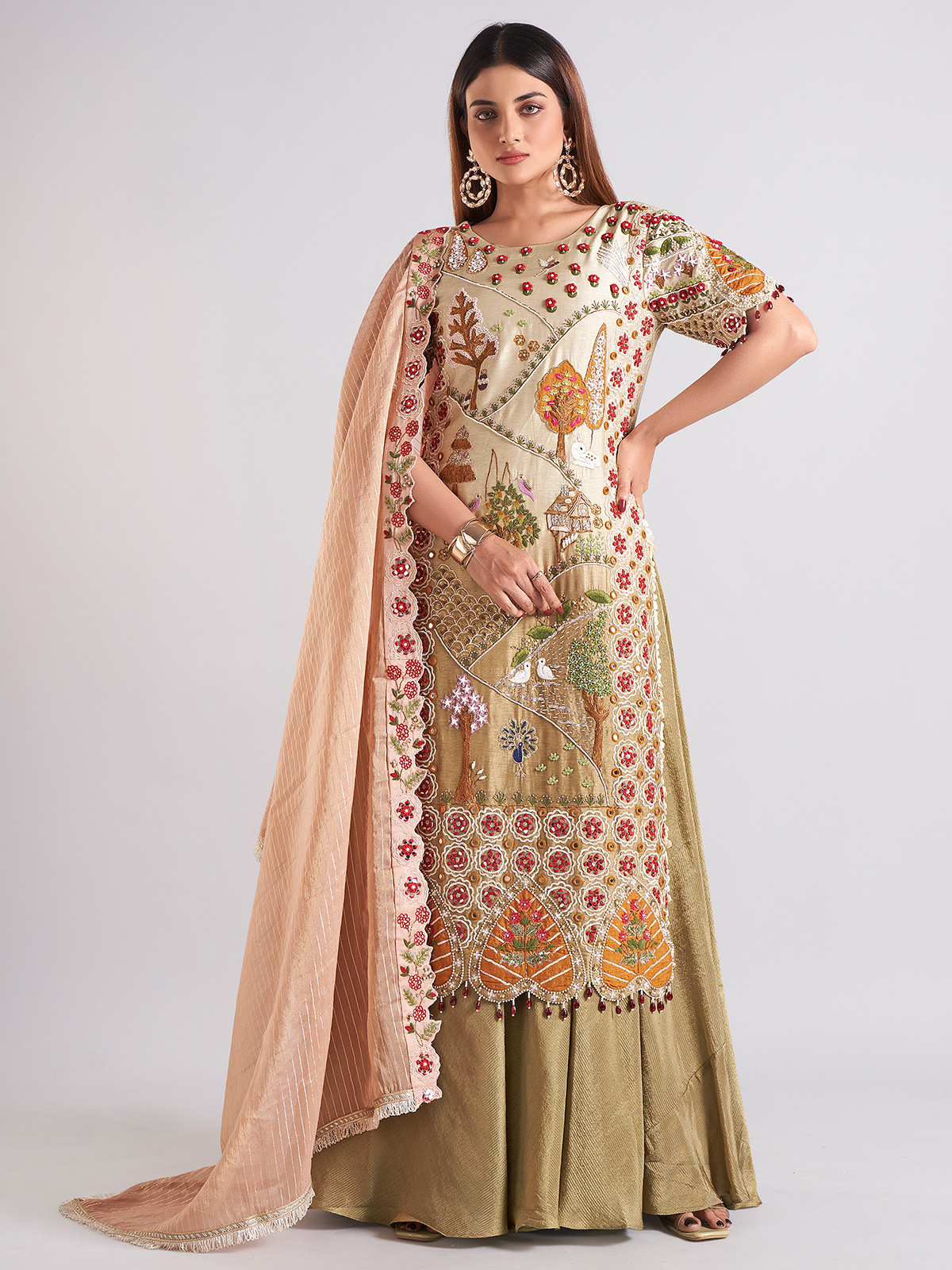 Our skilled artisans create exquisite lehengas, suits, and potlis using traditional Zardozi techniques like nakshi, dapka, resham, katdana, and kora. Experience timeless beauty with RANA ZARI ARTS!
